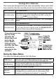Using the Menus The menus are designed to be as easy as possible. Some users don't even need the manual once they know how to perform these actions: Open the menu Press Menu/select. The arrow cursor on the left side of the line shows which Move the cursor menu item is currently highlighted. Use Up to move the cursor up & Down to move it down. Move the cursor to highlight the option, then press Menu/ Select an option select . Go up one screen Press Phonebook/left.