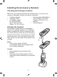 - Installing the Accessory Handset Checking the Package Contents Make sure your package contains the following items. If any items are missing or damaged, contact your place of purchase. • Cordless Handset • Rechargeable NiMH Battery • Charging Cradle Pack, model No: BT-446 • AC adaptor, model Capacity: 800 mAh, 3.