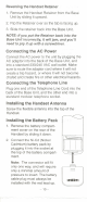 ~ Reversing the Handset Retainer 1. Remove the Handset Retainer from the Base Unit by sliding it upward. 2. Flip the Retainer over so the tab is facing up. 3. Slide the retainer back into the Base Unit. NOTE: If you put the Retainer back into the Base Unit incorrectly, it will jam, and you'll need to pry it up with a screwdriver. Connecting the AC Power Connect the AC power to the unit by plugging the AC adaptor into the back of the Base Unit, and into a standard 230/240 VAC wall outlet.