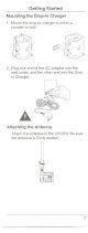 Getting Started Mounting the Drop-in Charger 1. Mount the drop-in charger to either a counter or wall. ~ 2. Plug one end of the AC adapter into the wall outlet, and the other end into the Dropin Charger. ~ Attaching the Antenna Attach the antenna to the UH-O54. Be sure the antenna is firmly seated.