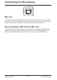 Connecting the Microphone MIC Jack Push the MIC plug at the end of the microphone into the MIC jack until the connection locks into place. Gently tug the MIC cord to test that the connection is locked. Use the rubber cover which is on the MIC cord to seal the MIC jack entry from dust. Disconnecting the MIC from the MIC Jack Pull back the rubber cover and move it down along the cord.