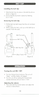 .. 1. 2. 3. 4. 5. BATTERYINSTALLATION. . .. Release the battery cover latch located on the rear of the unit. (See Figure 1). Liftup the battery cover from the battery compartment. Install four "AAA" type batteries following the polarities shown in Figure 2. Reinstall the battery cover. Lock the battery cover latch into position (See Figure 3). (Rear View) \ ....... Battery Compartm Cover AAA Batte e e >- >'" ,ji ID .... .... e >'" ,ji .... (8 (8 (8 (8 e >'" ,ji ....