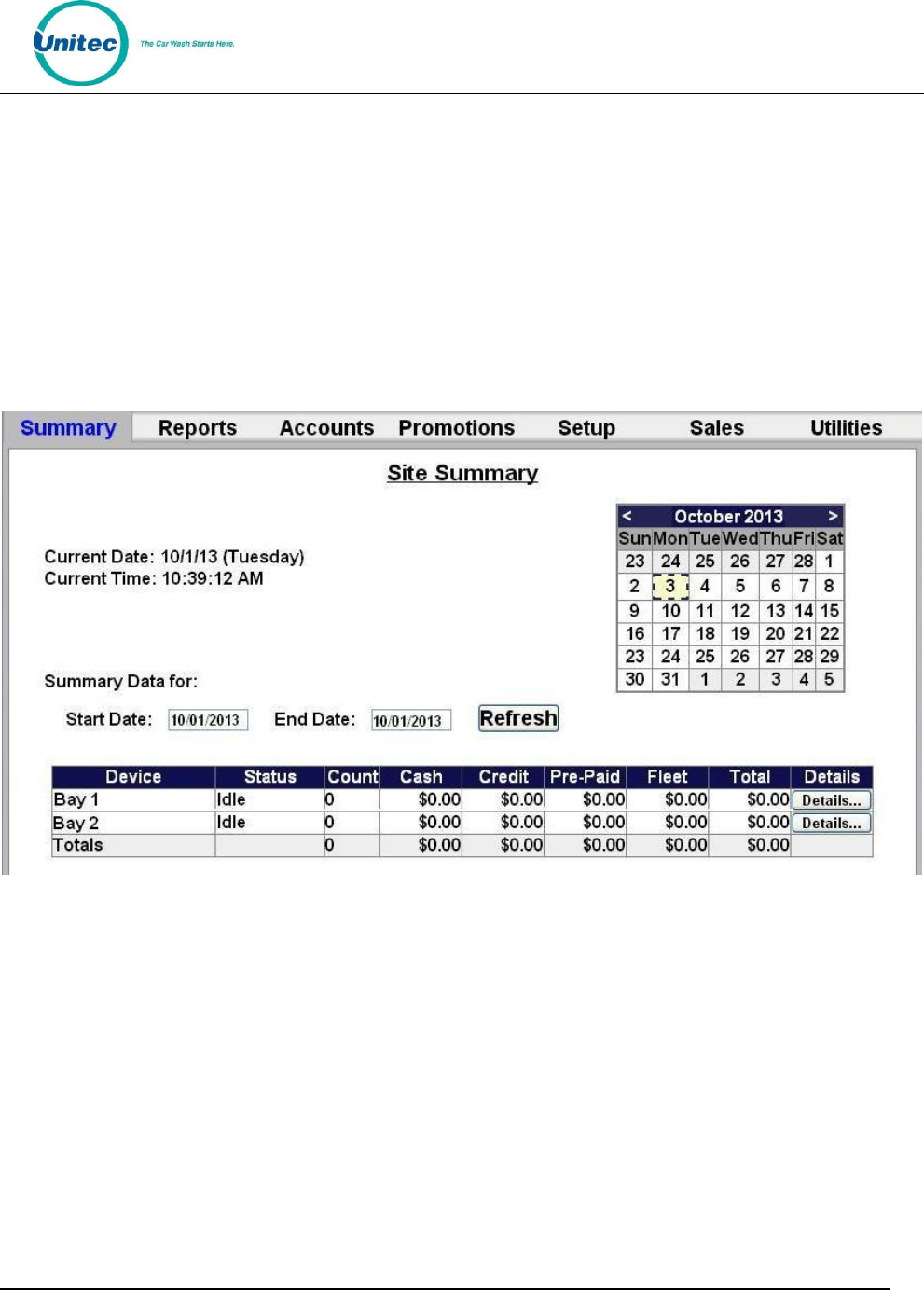 desired date in the calendar or by entering the start and end dates in the summary data fields. The