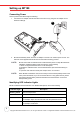 Setting up MT180 Connecting Power Connect power to MT180 through the following: 1. Connect the AC Adapter into MT180’s DC Connector Port (1). Plug the AC Adapter into an electrical outlet (2). 2 1 2. MT180 automatically starts!when the AC Adapter connects to an external power source. The welcome screen appears before MT180 runs the module checking process. NOTE: MT180 comes with an antitheft sensor inside the back panel.