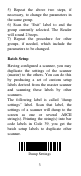 5) Repeat the above two steps, if necessary, to change the parameters in the same group. 6) Scan the “Exit” label to end the group currently selected. The Reader will sound 2 beeps. 7) Repeat the procedure for other groups, if needed, which include the parameters to be changed. Batch Setup Having configured a scanner, you may duplicate the settings of the scanner (master) to the others.