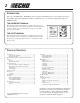 INTRODUCTION Welcome to the ECHO family. This ECHO product was designed and manufactured to provide long life and on-the-job dependability. Read and understand this manual. You will find it easy to use and full of helpful operating tips and SAFETY messages. THE OPERATOR’S MANUAL Read and understand this manual before operation. Keep it in a safe place for future reference.
