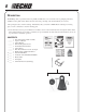 ASSEMBLY WARNING DANGER Use only ECHO approved attachments. Serious injury may result from using non-approved attachment combinations. Read and comply with all safety instructions listed in this manual and attachment manual. ECHO, INC. will not be responsible for the failure of cutting devices, attachments, or accessories which have not been tested and approved by ECHO for use with these units.
