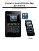 Complete Control Mobile App for Android Using the App While using the Complete Control Mobile Application, swipe left or right to access pages containing devices (Main Menu) or commands (Device Menu). To send a command, press a Keypad, Volume, Channel, Playback or Navigation button. Pressing and holding a button sends the command repeatedly until the button is no longer pressed.