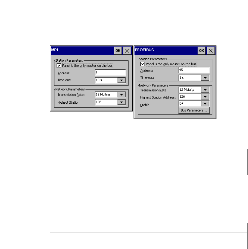 1. Use "Properties" to open the "MPI" or "PROFIBUS" dialog.
