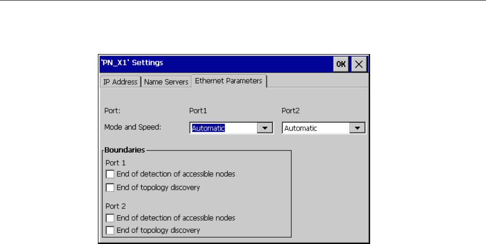 9. If needed, select the transmission mode and speed for the Ethernet port of the HMI