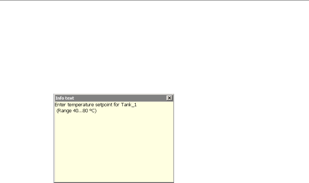 The infotext of an I/O field may contain, for example, information on the value to be entered.