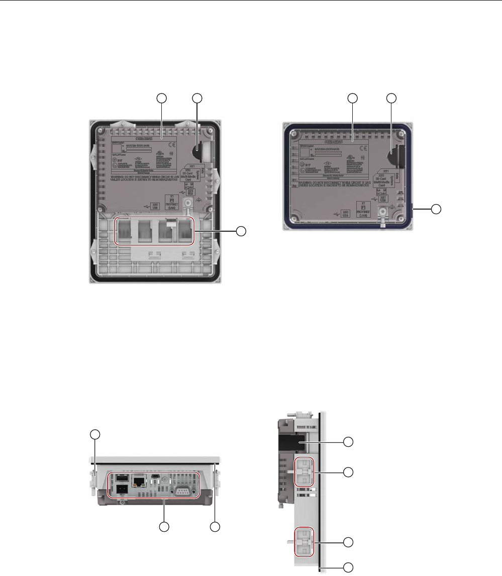 The following illustration shows the rear view of the HMI devices, KP400 Comfort (left) and