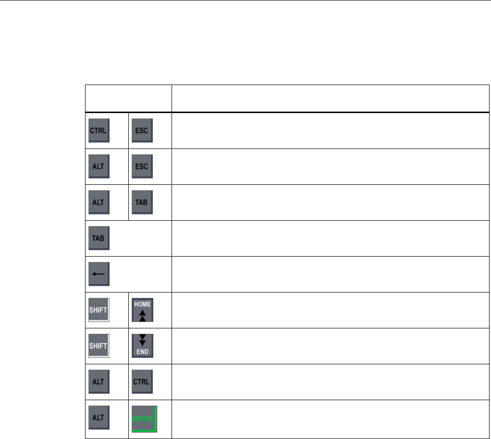 The following table shows the system key functions when operating Windows CE and the