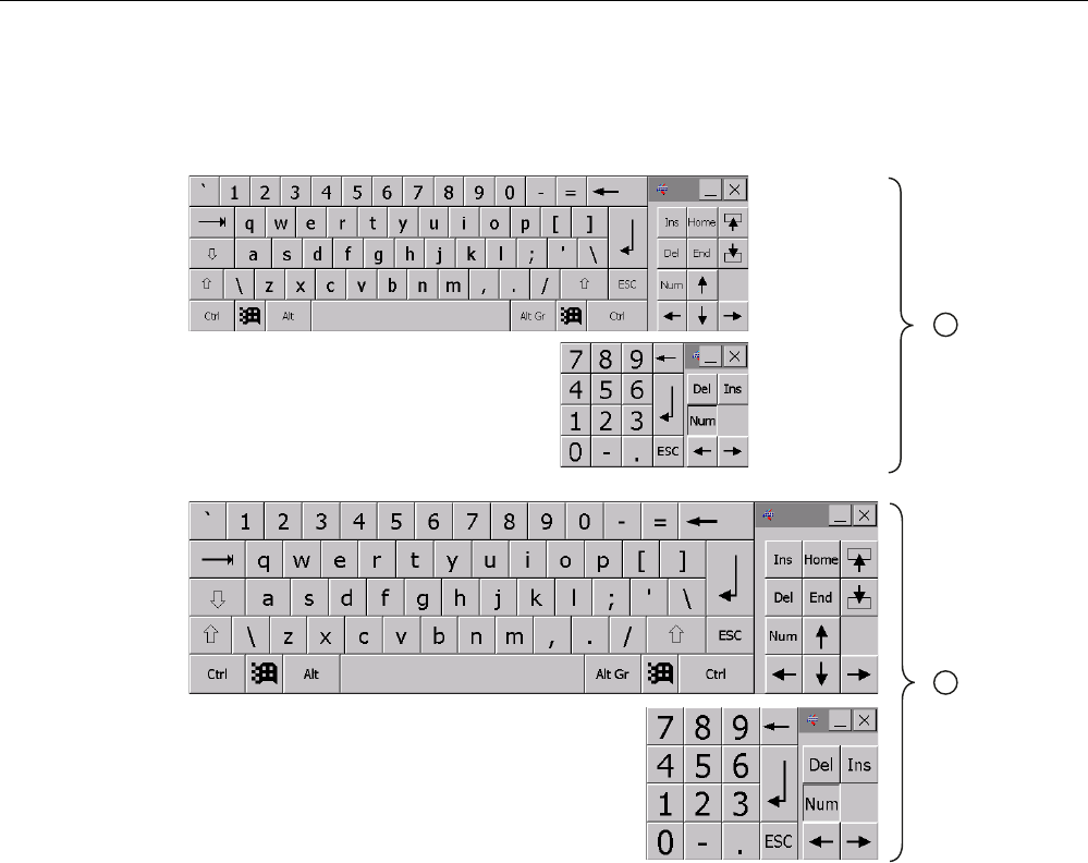 ① Screen keyboard with numeric keypad for mounting in vertical format (Touch HMI devices only)