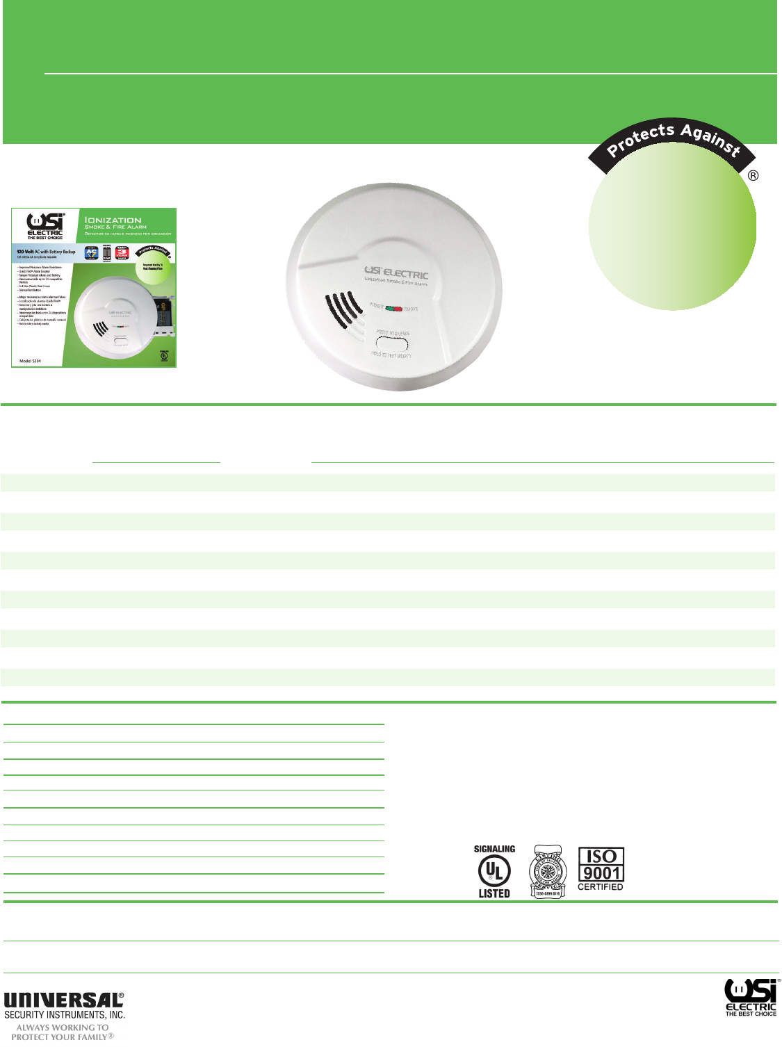 installation features, value and quality. This alarm is fully interconnectable with all USI and Universal brand alarms.