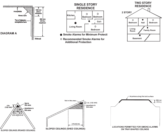 Smoke Alarms or combination alarms shall be installed on the highest portion of the ceiling