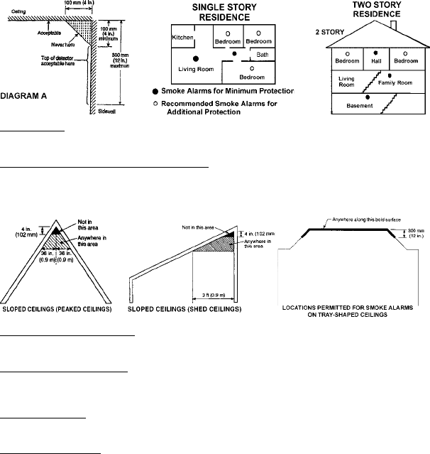 of the smoke alarm a minimum of 4" (10cm) and a maximum of 12" (30.5cm) below the ceiling/
