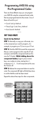 Programming AVEX R6 using Pre-Programmed Codes There are three different ways you can program your AVEX R6 using the component brand codes that are pre-programmed into the remote. One of these will work for you! • Quick Set-Up Method • Three-Digit Code Entry Method • Auto-Search Method *** TRY THIS FIRST! Quick Set-Up Method STEP 1: Manually or using your old remote, turn on the component you want to program—for example, to program your TV, turn on your TV set.