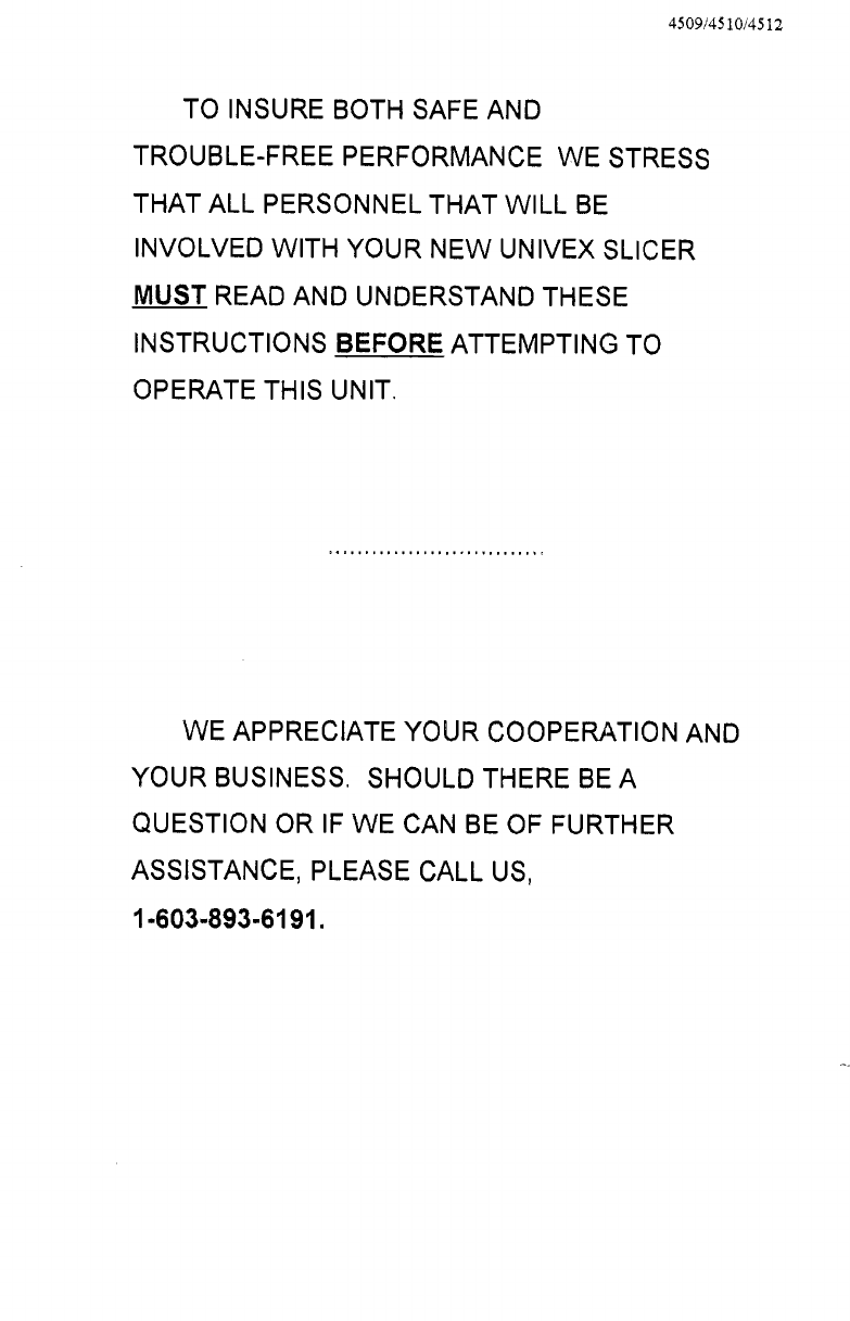 INVOLVED WITH YOUR NEW UNIVEX SLICER