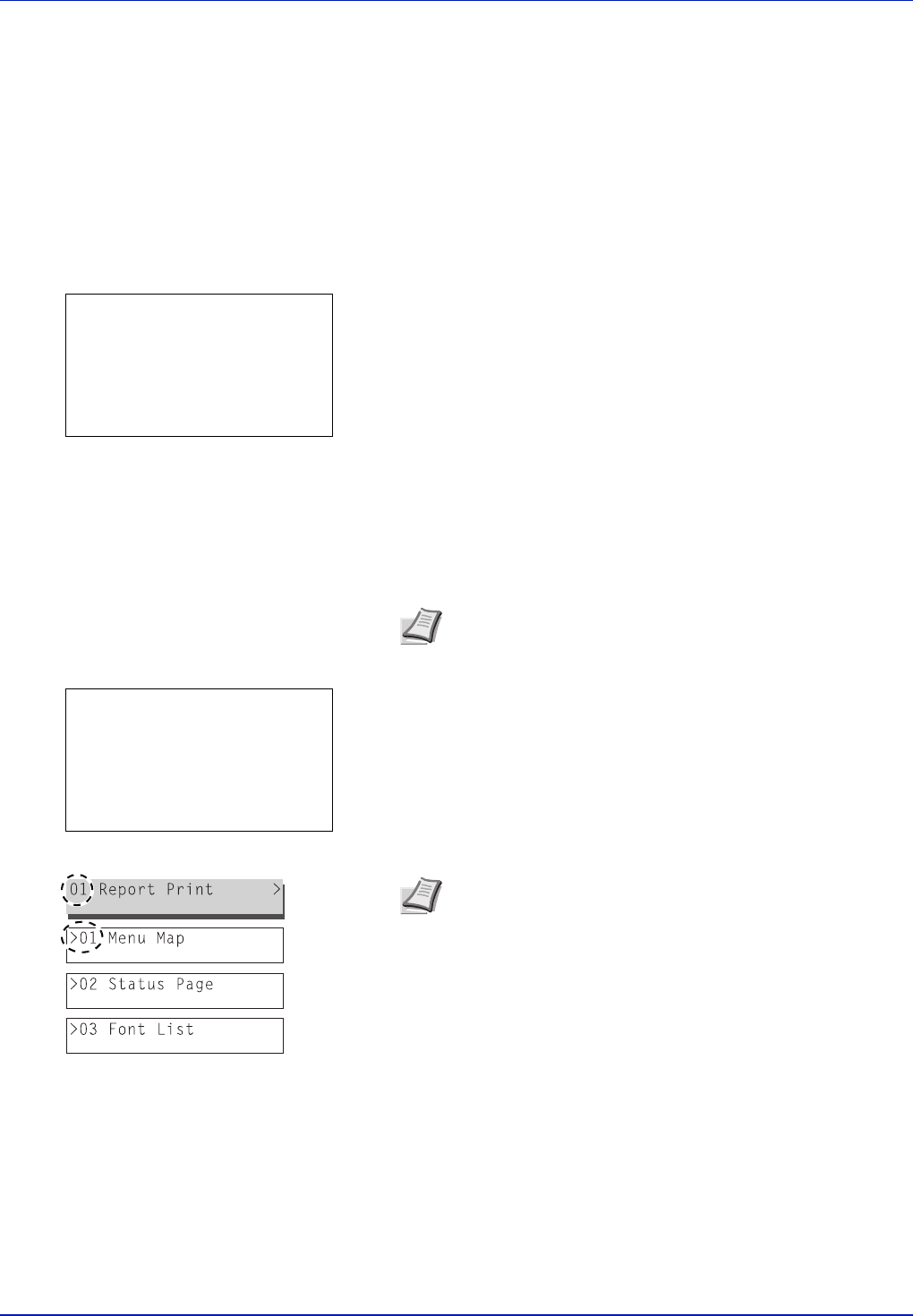 1 In the Report Print menu, press or to select Menu Map.