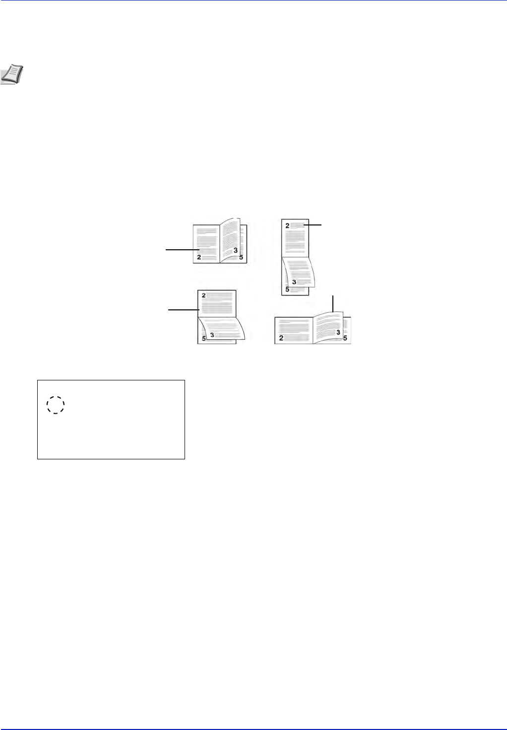 Depending on the binding type and print orientation, the duplexer provides four types of binding. These are: (1) portrait, Bind