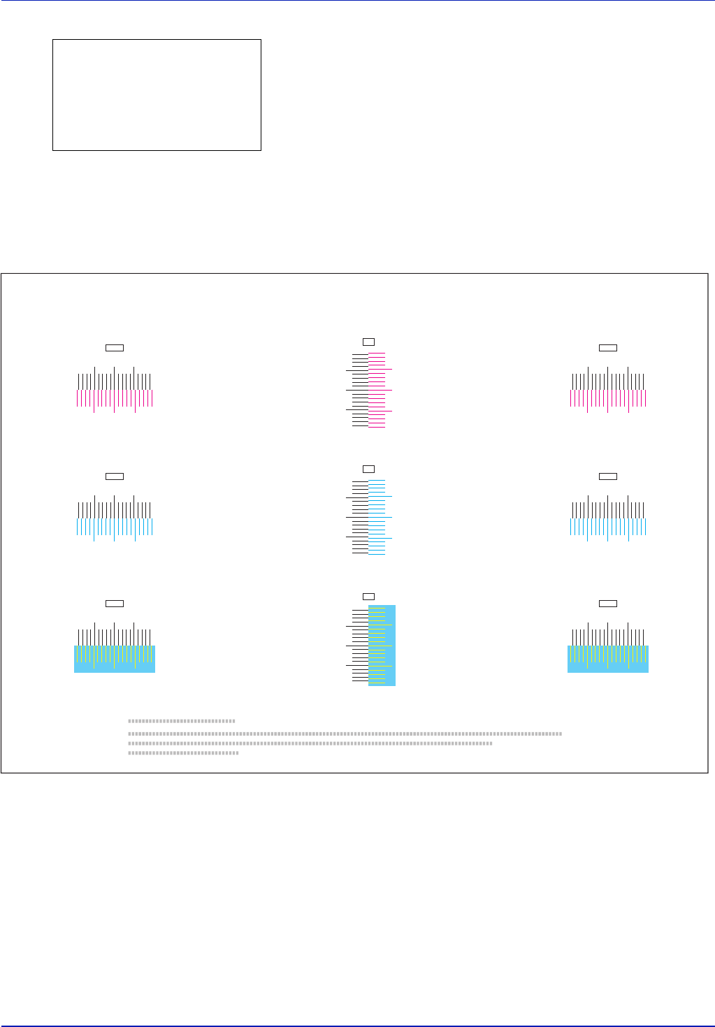 The printed color registration correction chart includes front (F), vertical (V) and rear (R) registration charts for each color