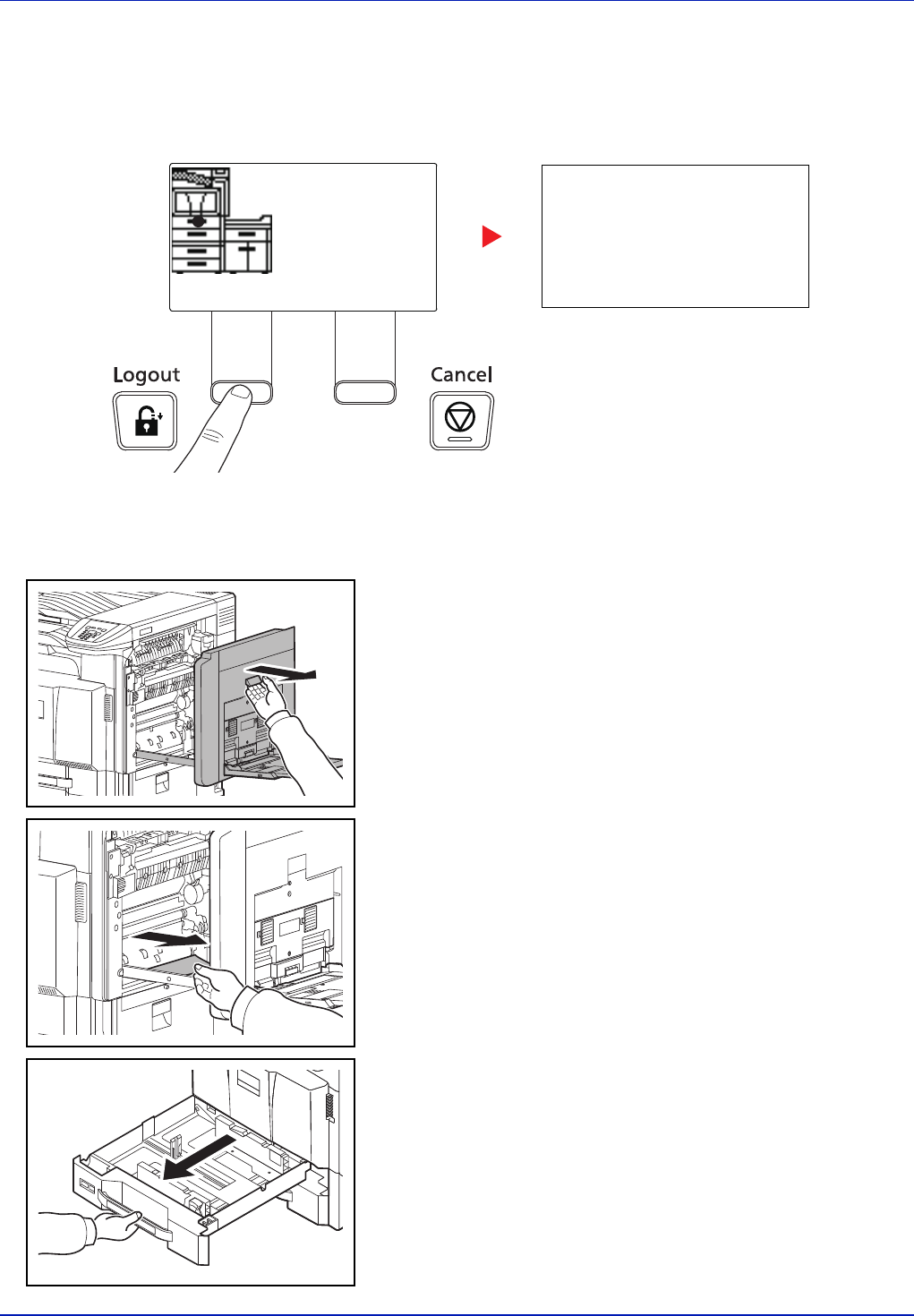 When Paper Jam is displayed, press [Help]([Left Select]) to display the procedure to clear the jam.