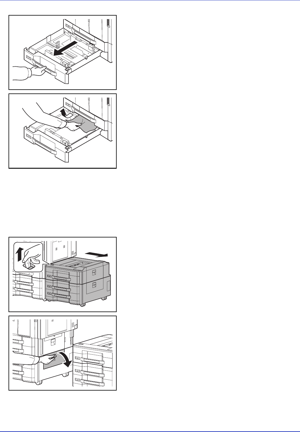 Follow the steps below to clear paper jams in cassettes 3 or 4 when using the optional paper feeder.