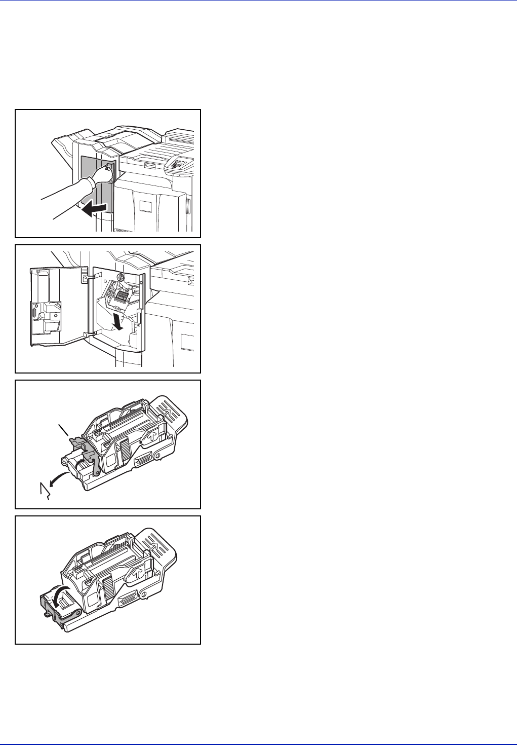 If a message indicating a staple jam is displayed on the machine’s operation panel, remove the jammed staples.