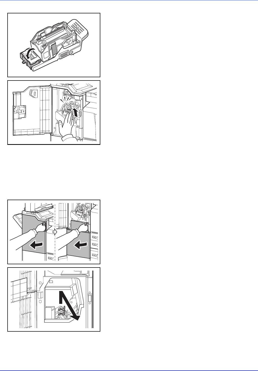 Follow the steps below to remove jammed staples from the optional folding unit.
