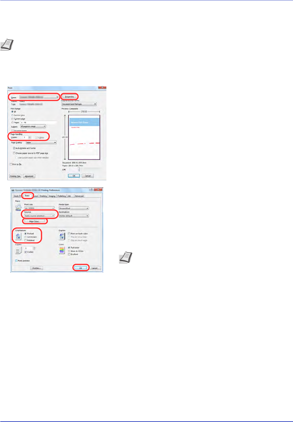 8 Select paper orientation, either Portrait or Landscape, to match the