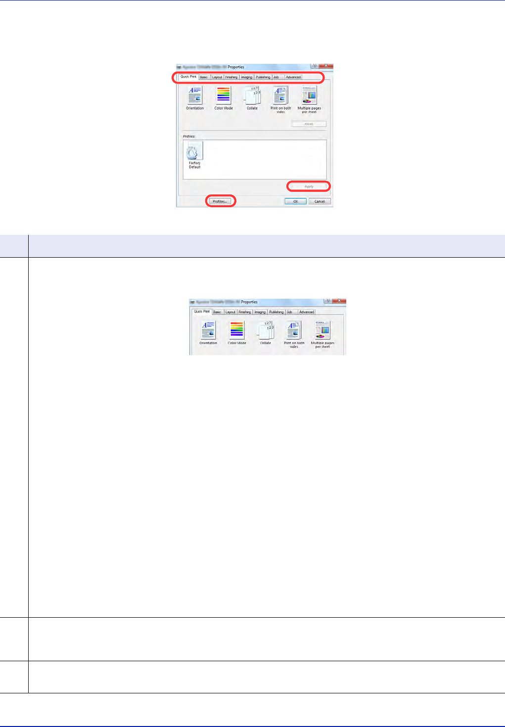 This tab lets you configure settings related to the quality and color mode of the print results.