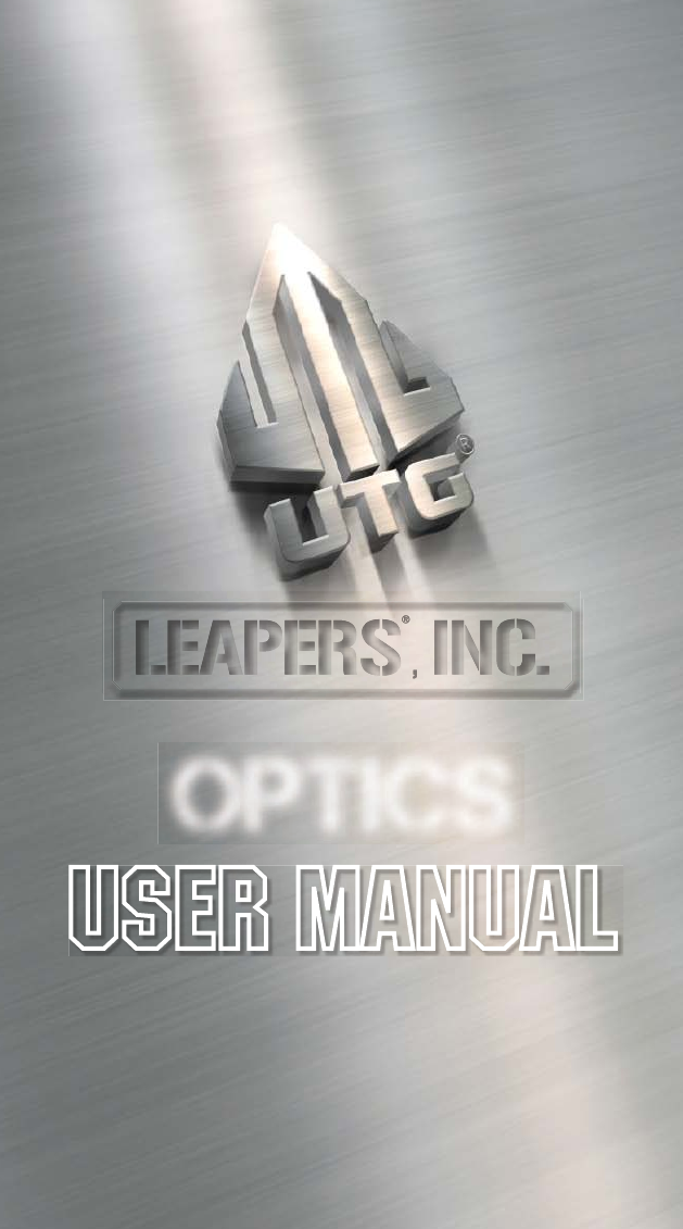 Leapers Inc. ® Proudly Presents UTG OPTICS RANGE ESTIMATING SCOPES RETICLE INTENSIFIED SCOPES TOTAL SOLUTION TO YOUR NEEDS -COMMITMENT TO BEST QUALITY, BEST VALUE AND BEST SERVICEwww.LEAPERS.com 32700 Capitol Street, Livonia, MI 48150, U.S.A. Tel:(734)542-1500 Fax:(734)542-7095 Email:office@leapers.com Index A. Scope Parts Illustration 4 B. Major Features 7 C. Mounting the Scope 8 D. Understanding the Reticle 10 E. Adjusting Diopter 12 F. Installing Battery 12 G.