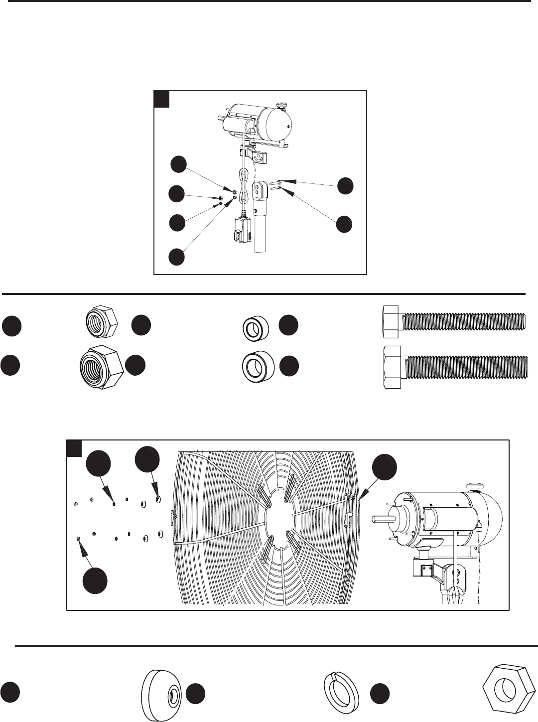 4 bowl washers (II), four spring washers (JJ) and four M5x3.5 nuts (KK).