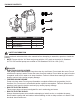 SOLUCIÓN DE PROBLEMAS PROBLEMA CAUSA POSIBLE La bomba no 1. Hay una fuga de aire en el tubo de empieza a succión. bombear ni retiene el cebado luego del funcionamiento o deja de bombear 2. Los conectores no están apretados. agua. 3. L a manguera está torcida o tiene un bucle. 4. La manguera de entrada no tiene agua. 5. La entrada está obstruida. 6. La elevación de entrada es demasiado alta. 7. El impulsor está bloqueado. 8. El sello está gastado. 9. Manguera de entrada contraída.