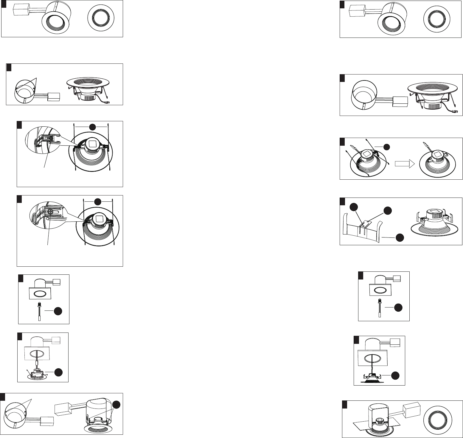 2. The factory setting of the spring clips (D) is for 6 in. housings. To install in