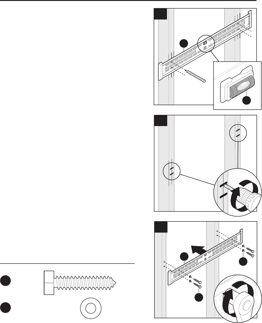 Nota: utilice un nivel de burbuja (B) para nivelar