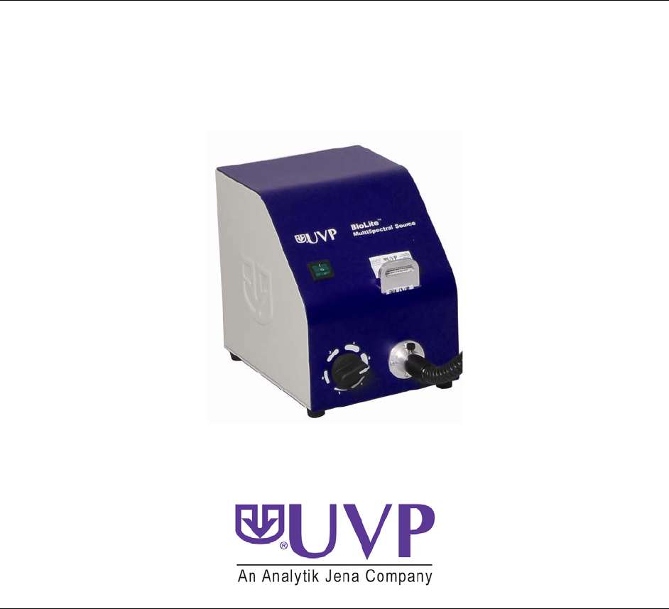 Manual BioLite™ MultiSpectral Light Source Installation and User Instructions UVP, LLC 2066 W. 11th Street Upland, CA 91786 Phone: (800) 452-6788 Fax: (909) 946-3597 Ultra-Violet Products Ltd. Unit 1, Trinity Hall Farm Estate Nuffield Road, Cambridge CB4 1TG UK Phone: +44(0)1223-420022 Fax: +44(0)1223-420561 Web Site: www.uvp.