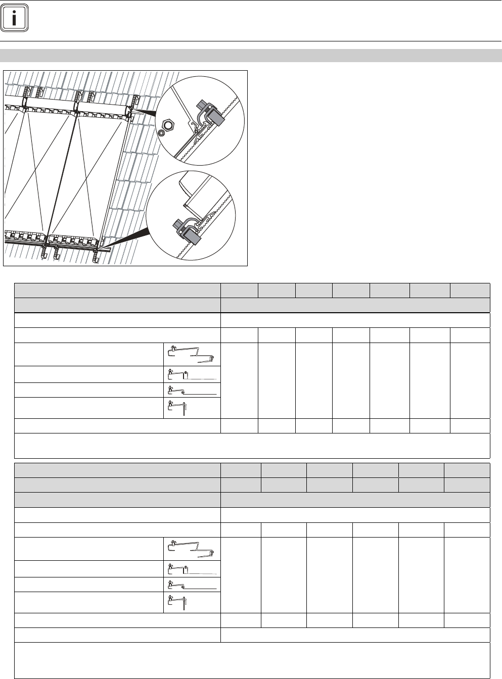 Bij daklatafstanden van meer dan 460 mm zijn de 2-rijige en de 3-rijige montage niet mogelijk. In dit geval kunt