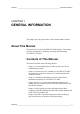 ________________________________________________________________________________ Table of Contents CHAPTER 1 GENERAL INFORMATION............................................................................ 3 About This Manual ................................................................... 3 Contents of This Manual ....................................................... 3 Version Information ............................................................... 4 Feedback.......................................