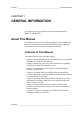 ________________________________________________________________________________ Table of Contents CHAPTER 1 GENERAL INFORMATION............................................................................ 7 About This Manual ................................................................... 7 Contents of This Manual ....................................................... 7 Version Information ............................................................... 8 Related Manuals ...............................
