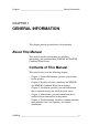 ___________________________________________________________________ Table of Contents CHAPTER 1 GENERAL INFORMATION .......................................................3 About This Manual..................................................3 Contents of This Manual.......................................3 Version Information...............................................4 Feedback..............................................................4 Safety .........................................................