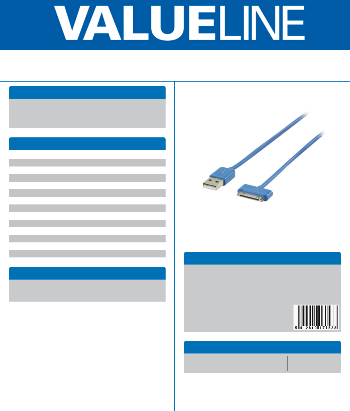 USB sync & charge cable 30-pin dock male - USB A male 2.00