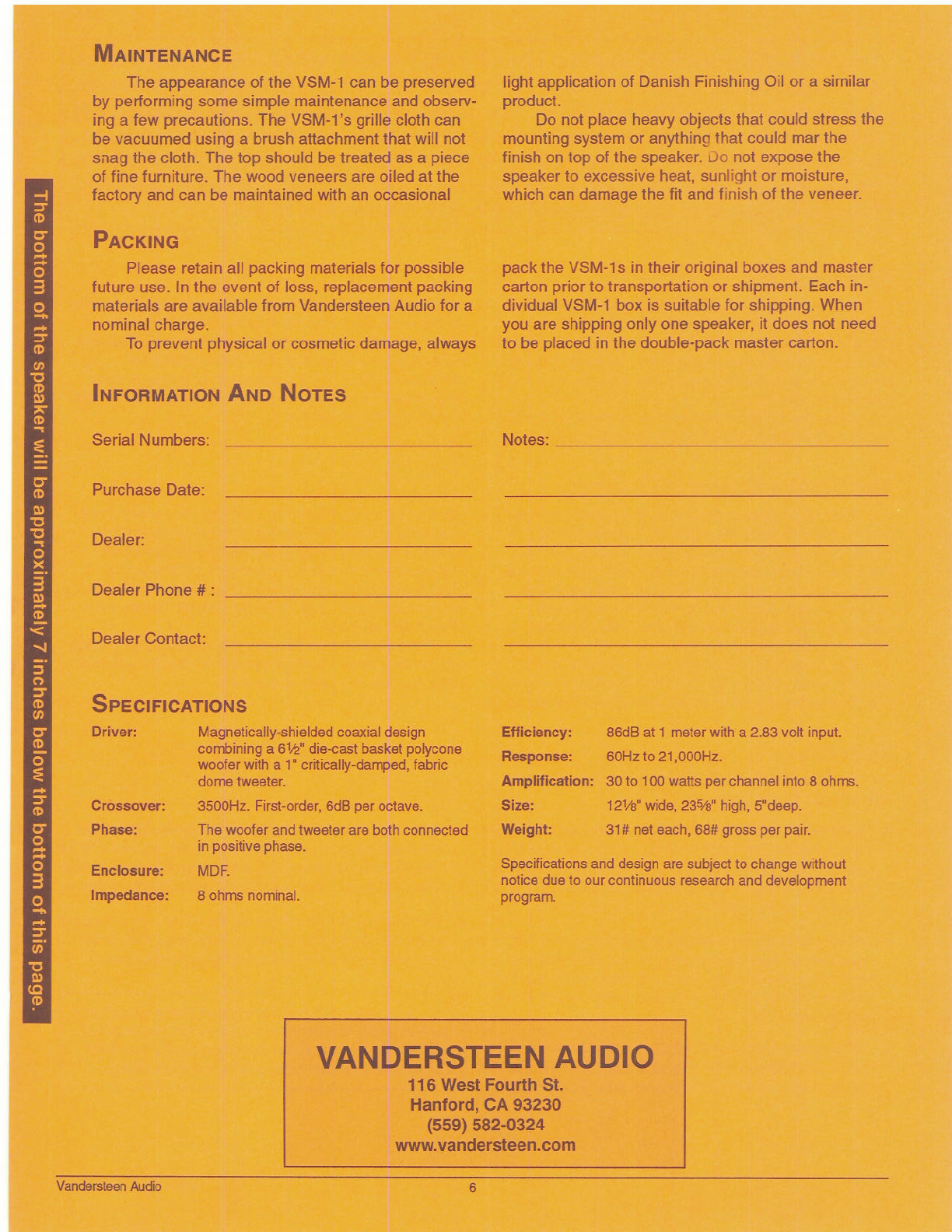 - Vandersteen Audio, Inc. Surface-Mount Loudspeaker Operation Manual