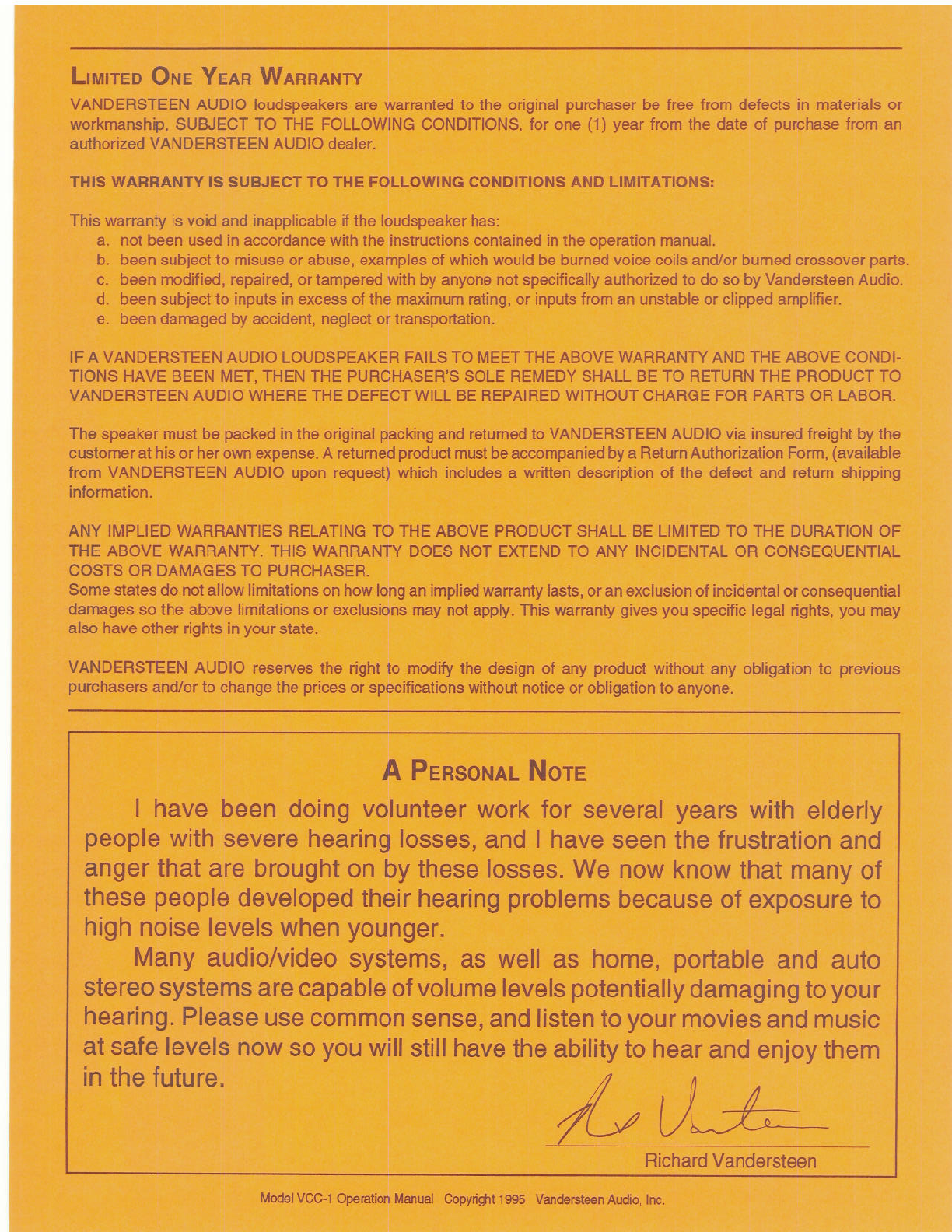 - Vandersteen Audio, Inc. Surface-Mount Loudspeaker Operation Manual