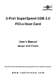 2-Port SuperSpeed USB 3.0 PCI-e Host Card User’s Manual Model: UGT-PC302 All brand names and trademarks are properties of their respective owners. www.vantecusa.