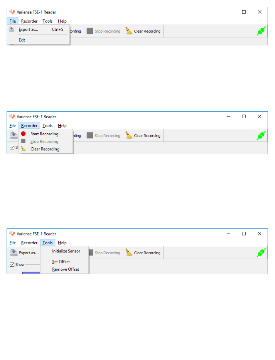Figure 4.3: Menu bar of the FSE-1 Reader (Recorder)