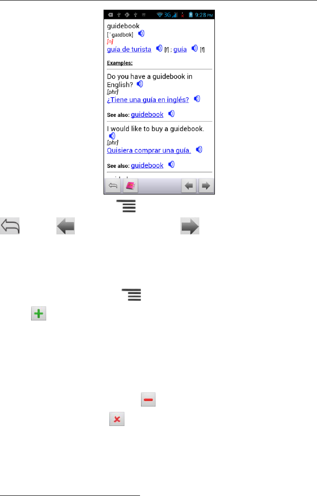 – return; – go to the previous entry; – go to the next entry.