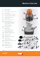 Machine Overview 1 2 3 4 5 6 7 8 9 10 11 Hose connector Dirt container Cyclone separator and shroud Carry handle Dirt container release button Cord rewind button (hidden) Floor head parking slot On/off button Post-motor filter cover Primary separator H12 HEPA post-motor filter Anti-bacterial H12 HEPA post-motor filter (some models only) 12 Pre-motor filter 13 Turbo Brush (some models only) 14 Combination floor head (some models only) 15 Telescopic extension tube 16 Flexi crevice tool 17 Dusting brush 18 Fl