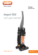 Thank you for buying this Impact 502. Taking care of your carpets and hard floors The Impact 502 is designed to make vacuuming regularly, as effective and efficient as possible and this user guide will help you get the most out of your machine. Maintaining your carpets and hard floors will ensure they keep their appearance for longer and Vax will help you take good care of them.